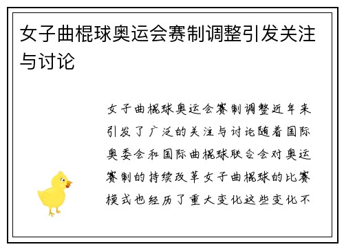 女子曲棍球奥运会赛制调整引发关注与讨论