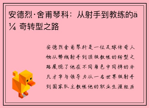 安德烈·舍甫琴科:从射手到教练的传奇转型之路